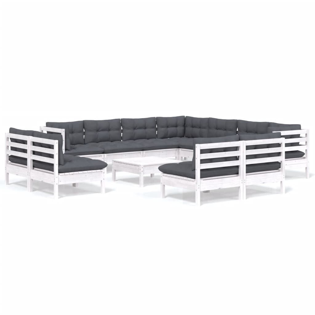 vidaXL 12-daļīgs dārza mēbeļu komplekts ar matračiem, balta priede
