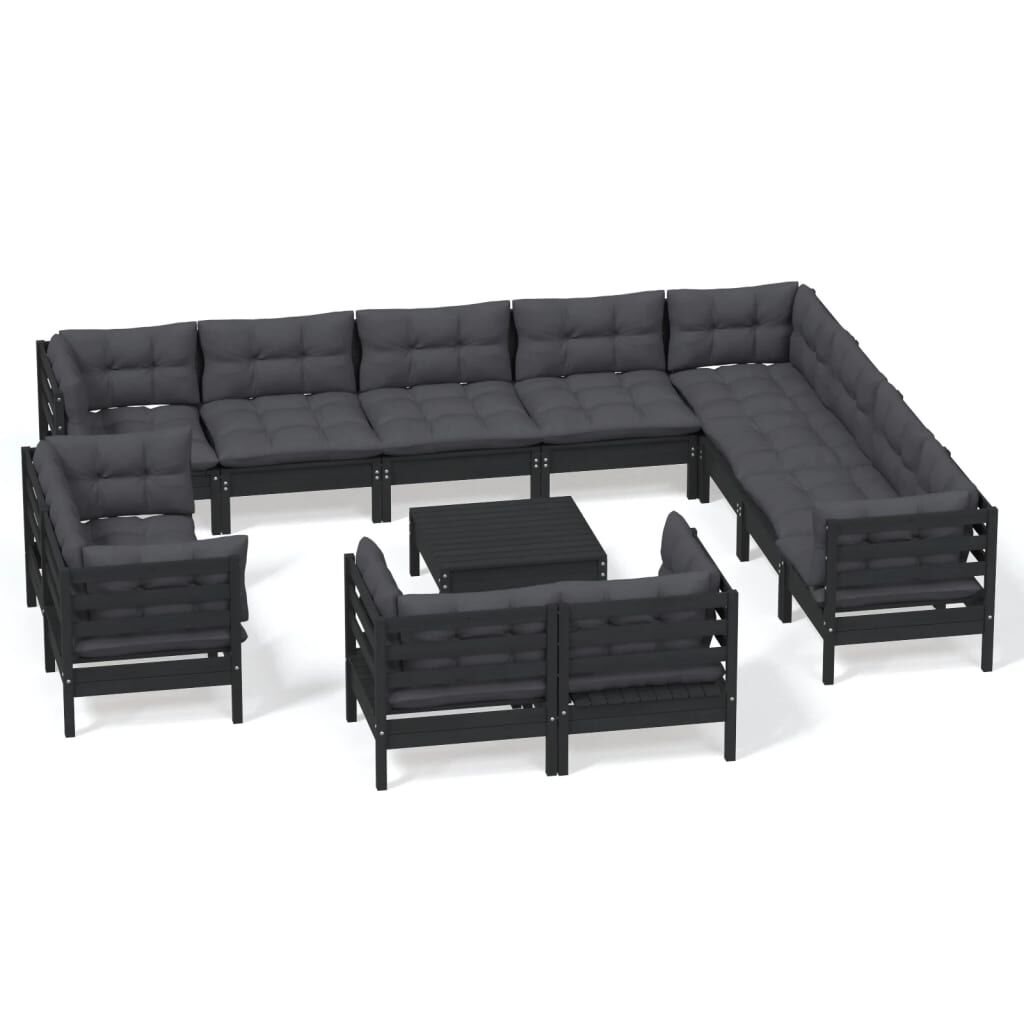 vidaXL 13-daļīgs dārza mēbeļu komplekts ar matračiem, melna priede