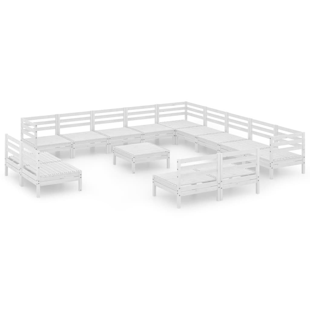 vidaXL 14-daļīgs dārza atpūtas mēbeļu komplekts, balts priedes koks
