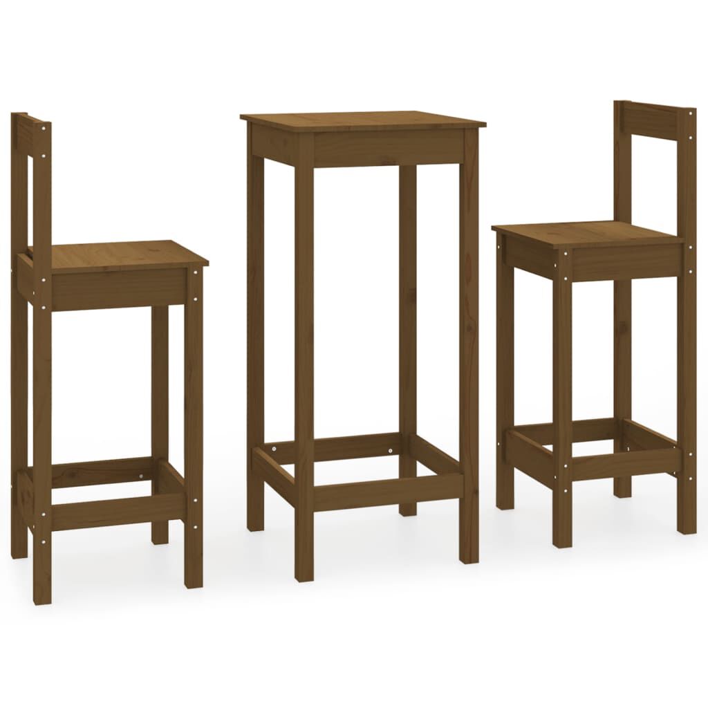 vidaXL 3-daļīgs bāra mēbeļu komplekts, medus brūns, priedes masīvkoks