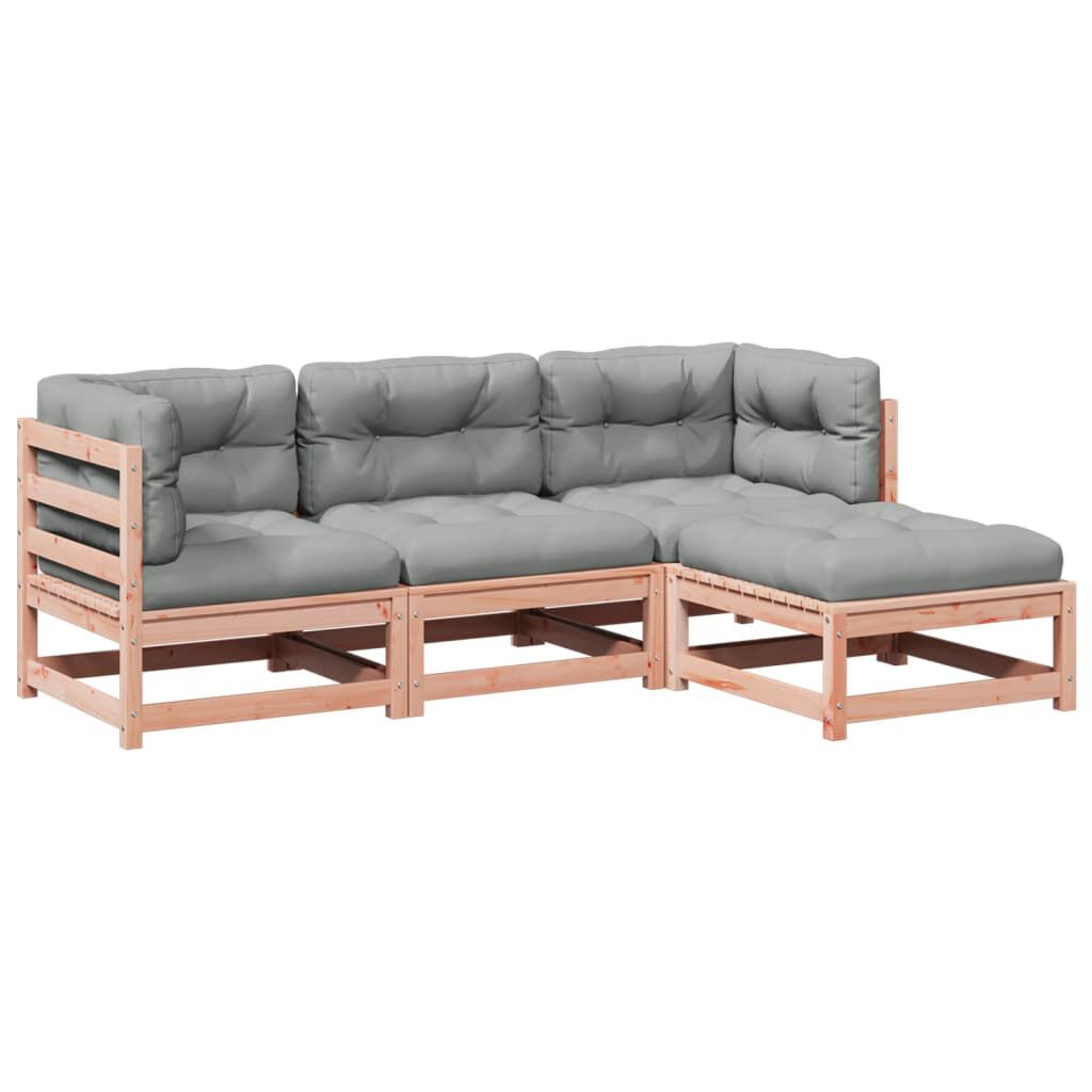 vidaXL 4-daļīgs dārza dīvānu komplekts, matrači, egles masīvkoks