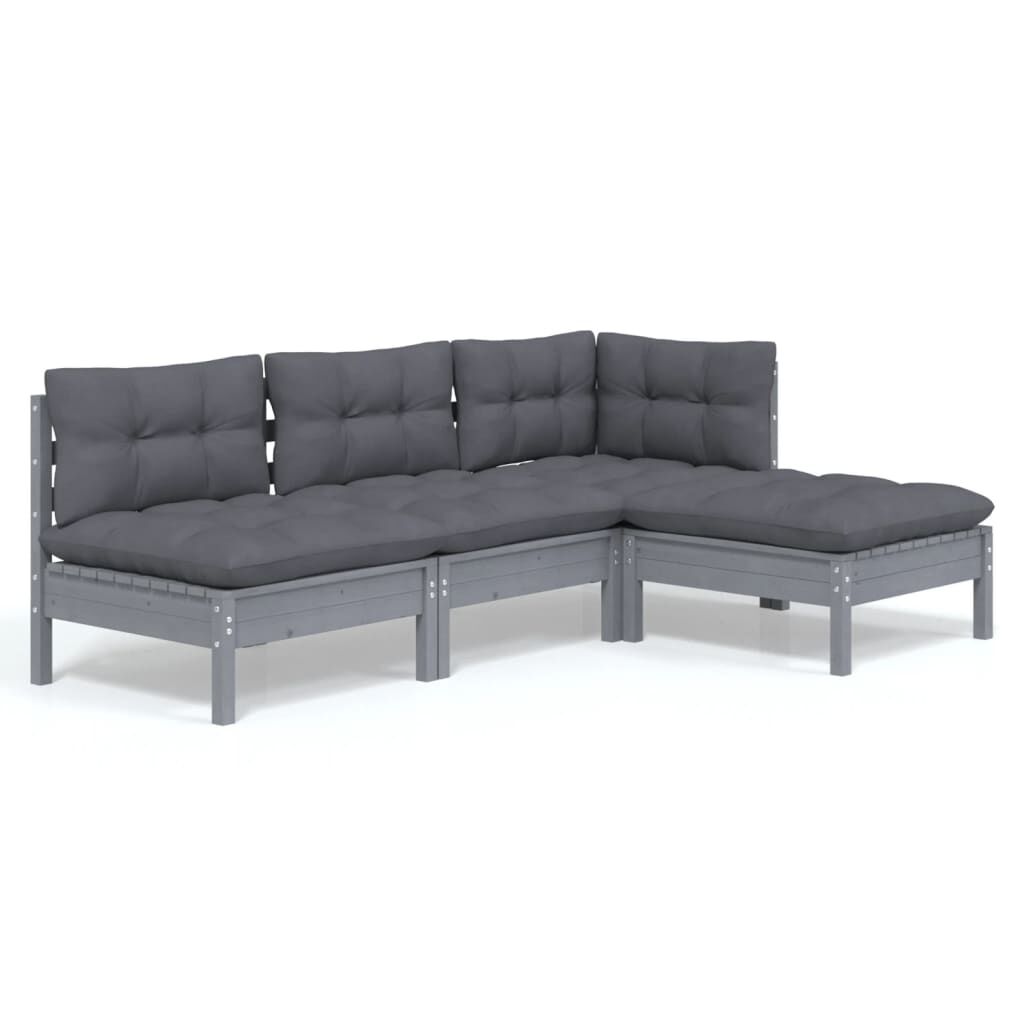 vidaXL 4-daļīgs dārza mēbeļu komplekts ar matračiem, pelēka priede