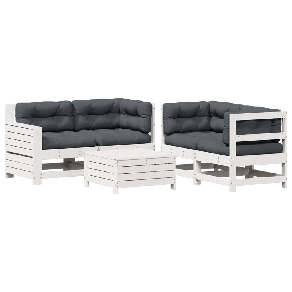 vidaXL 5-daļīgs dārza atpūtas mēbeļu komplekts ar matračiem, balts