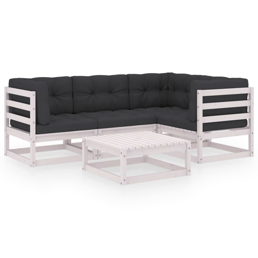 vidaXL 5-daļīgs dārza atpūtas mēbeļu komplekts ar matračiem, priede
