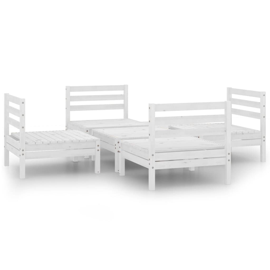 vidaXL 5-daļīgs dārza atpūtas mēbeļu komplekts, balts priedes koks