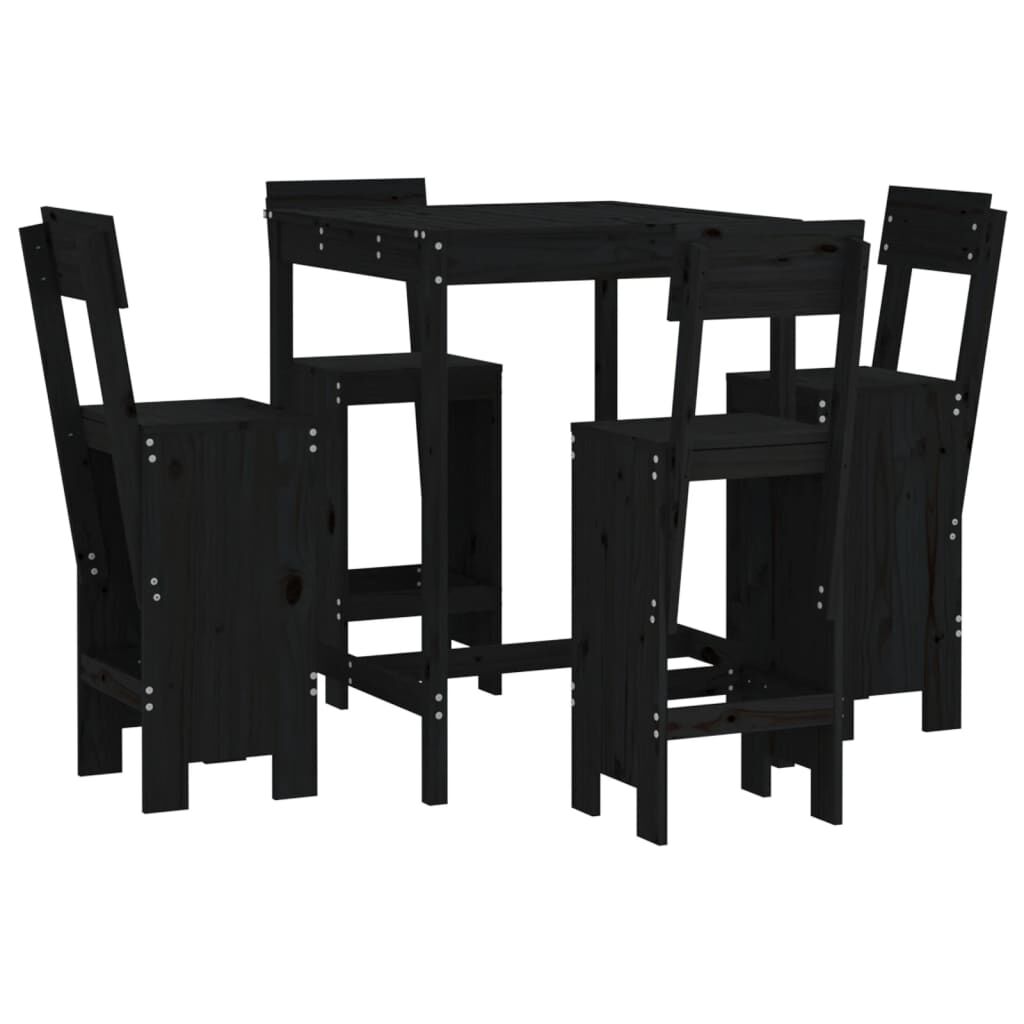 vidaXL 5-daļīgs dārza bāra mēbeļu komplekts, priedes masīvkoks, melns