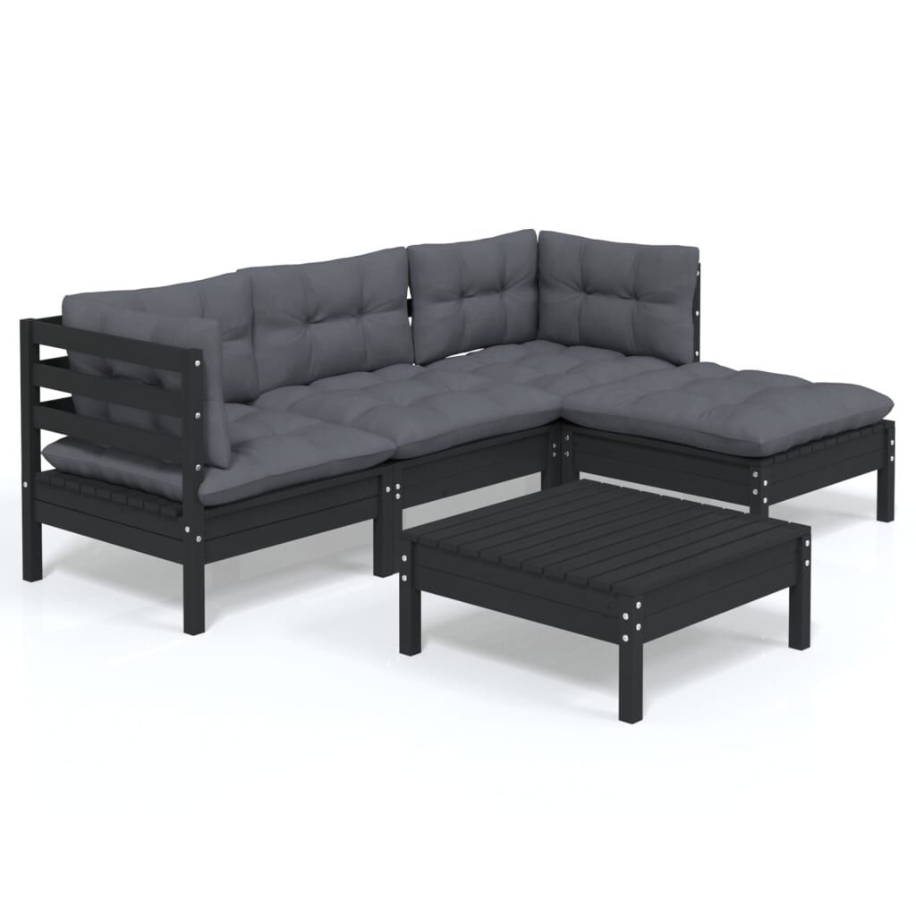 vidaXL 5-daļīgs dārza mēbeļu komplekts ar matračiem, melna priede