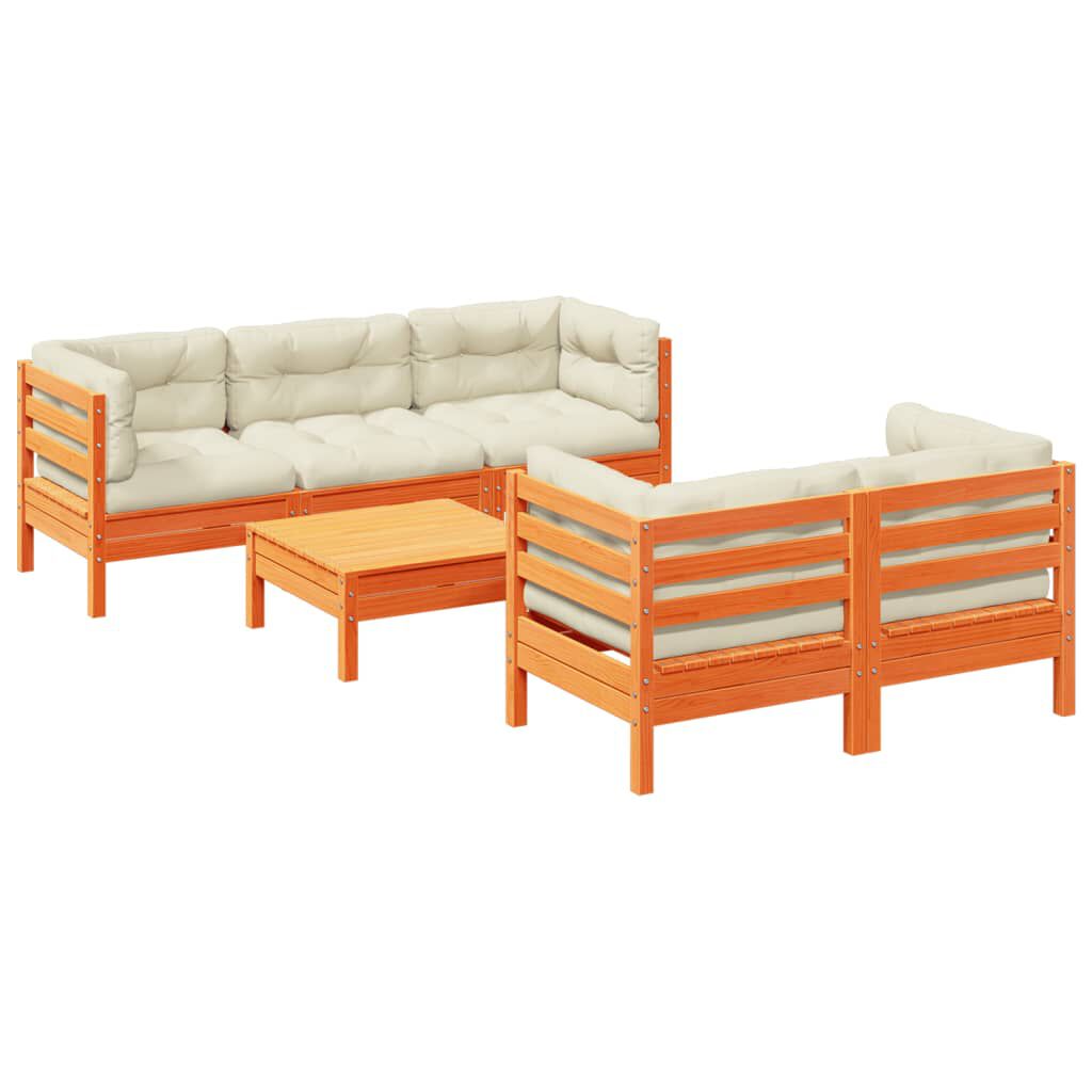vidaXL 6-daļīgs dārza dīvānu komplekts, matrači, brūns priedes koks