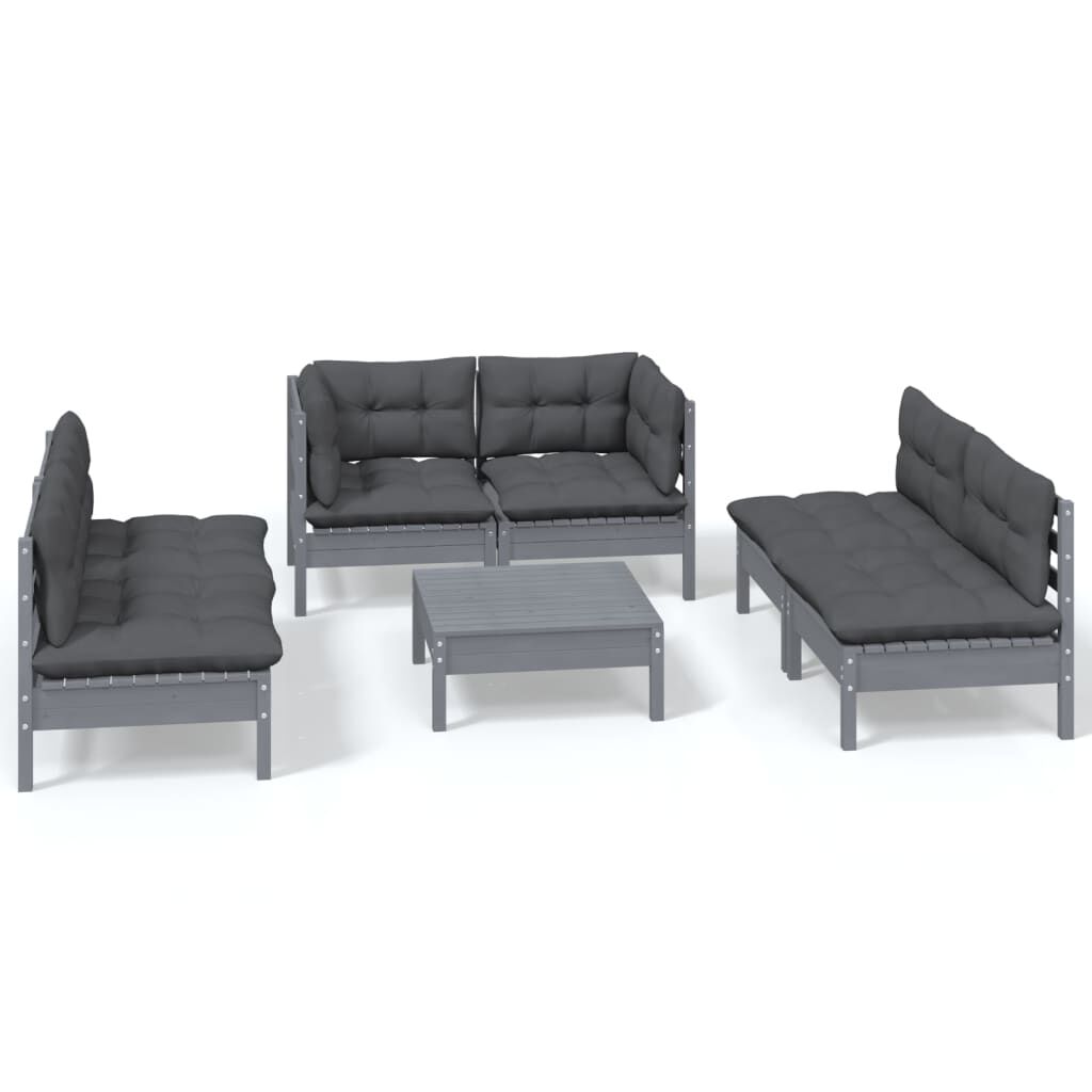 vidaXL 7-daļīgs dārza atpūtas mēbeļu komplekts ar matračiem, priede