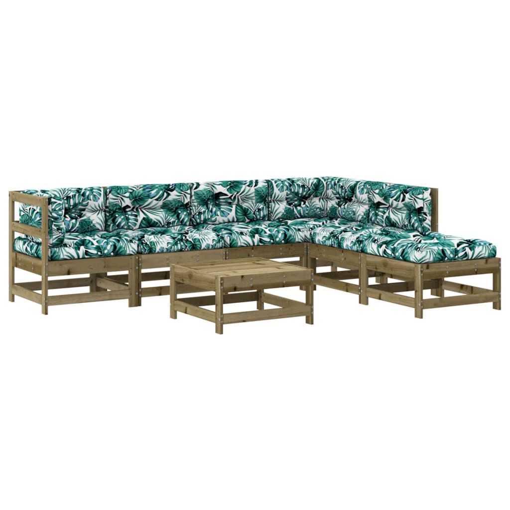vidaXL 7-daļīgs dārza atpūtas mēbeļu komplekts ar matračiem, priede