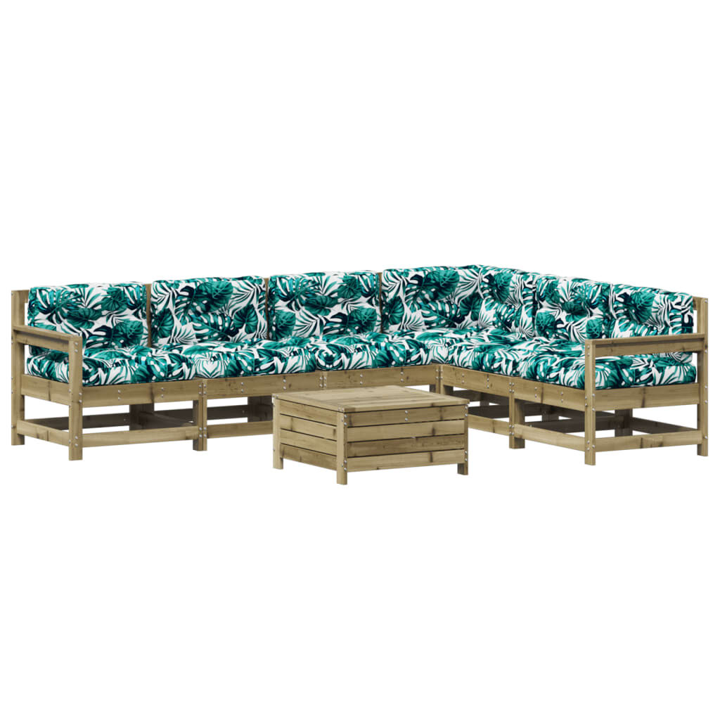 vidaXL 7-daļīgs dārza atpūtas mēbeļu komplekts ar matračiem, priede