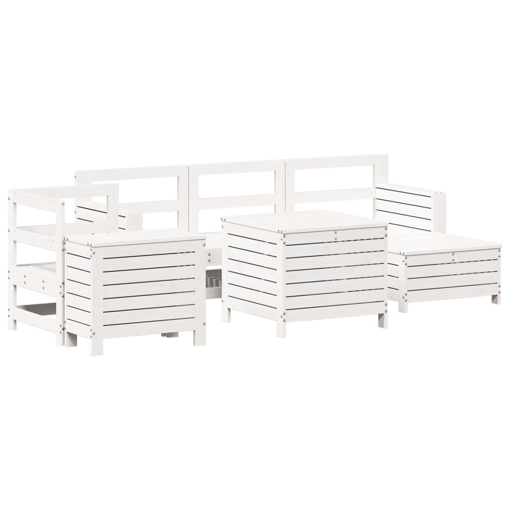 vidaXL 7-daļīgs dārza dīvānu komplekts, priedes masīvkoks, balts