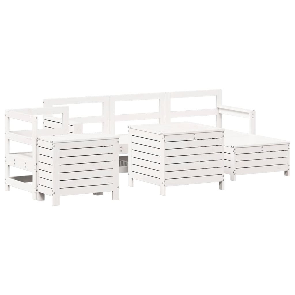 vidaXL 7-daļīgs dārza dīvānu komplekts, priedes masīvkoks, balts