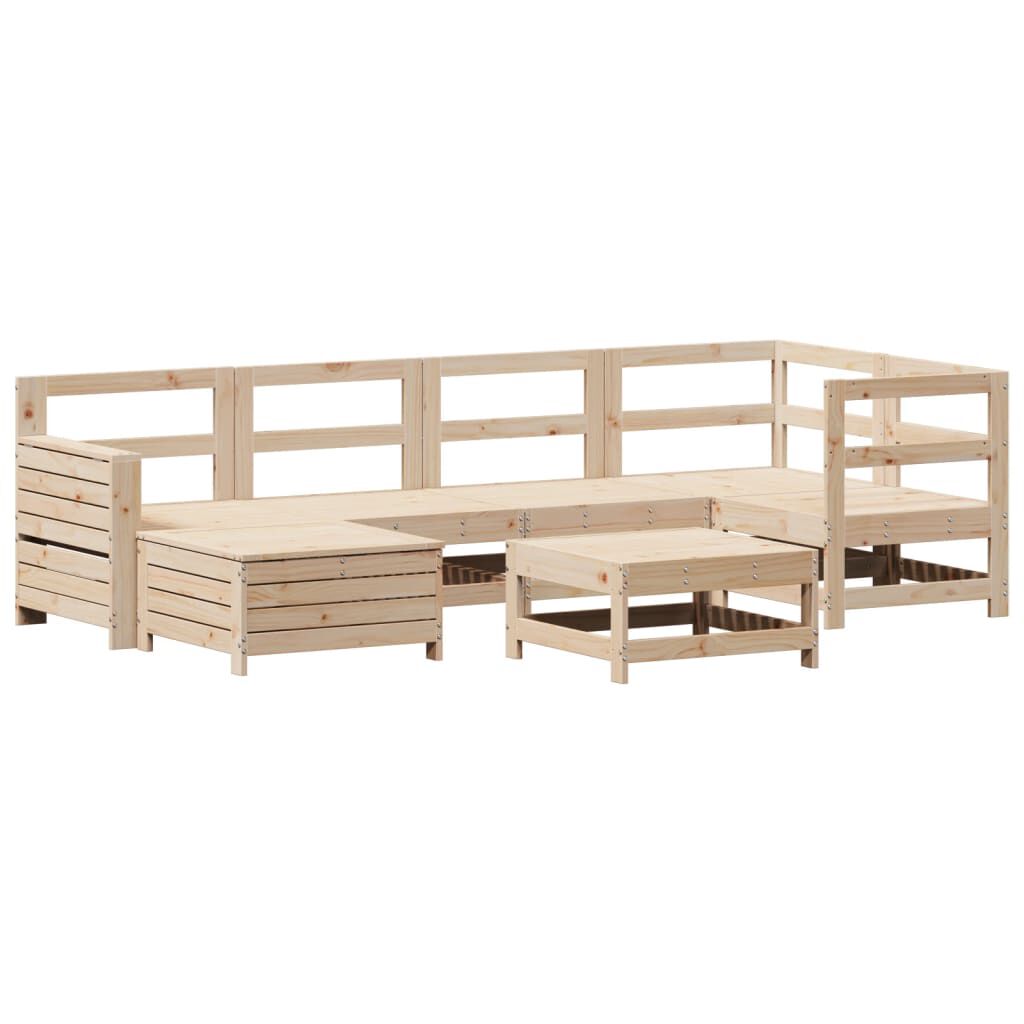 vidaXL 7-daļīgs dārza dīvānu komplekts, priedes masīvkoks