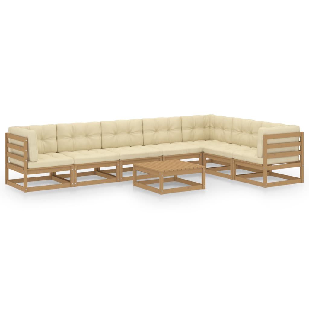 vidaXL 8-daļīgs dārza atpūtas mēbeļu komplekts ar matračiem, priede