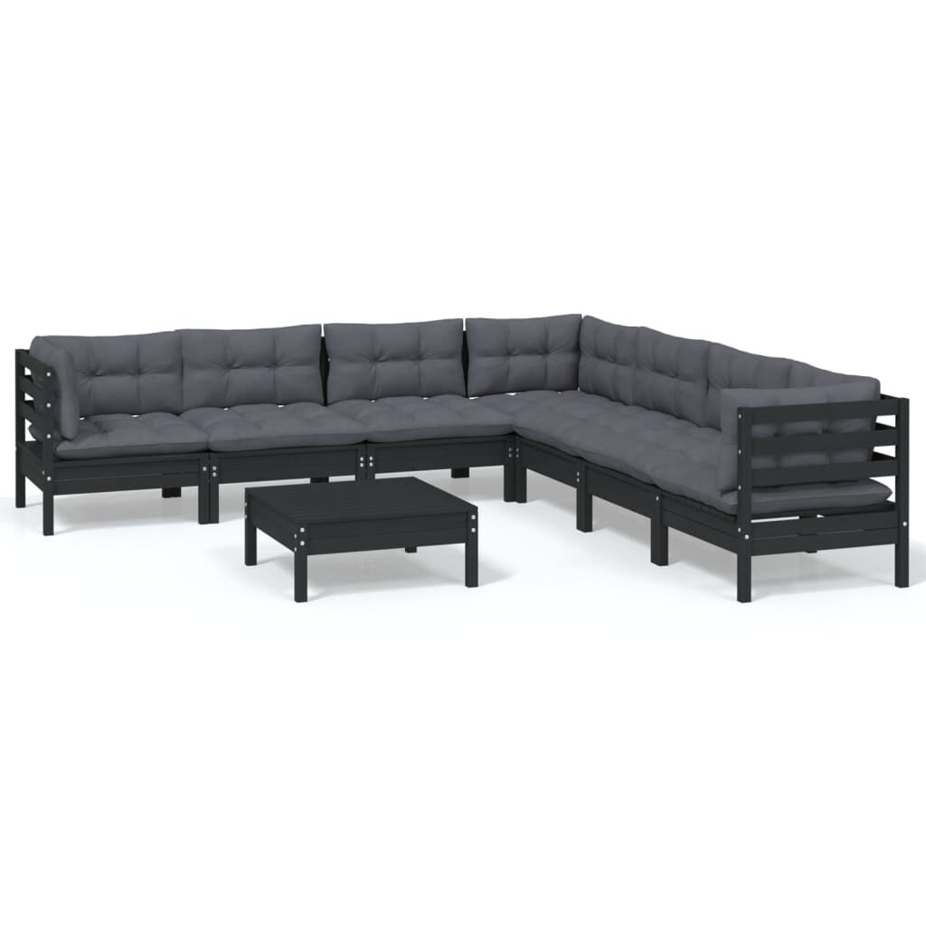 vidaXL 8-daļīgs dārza mēbeļu komplekts ar matračiem, melna priede