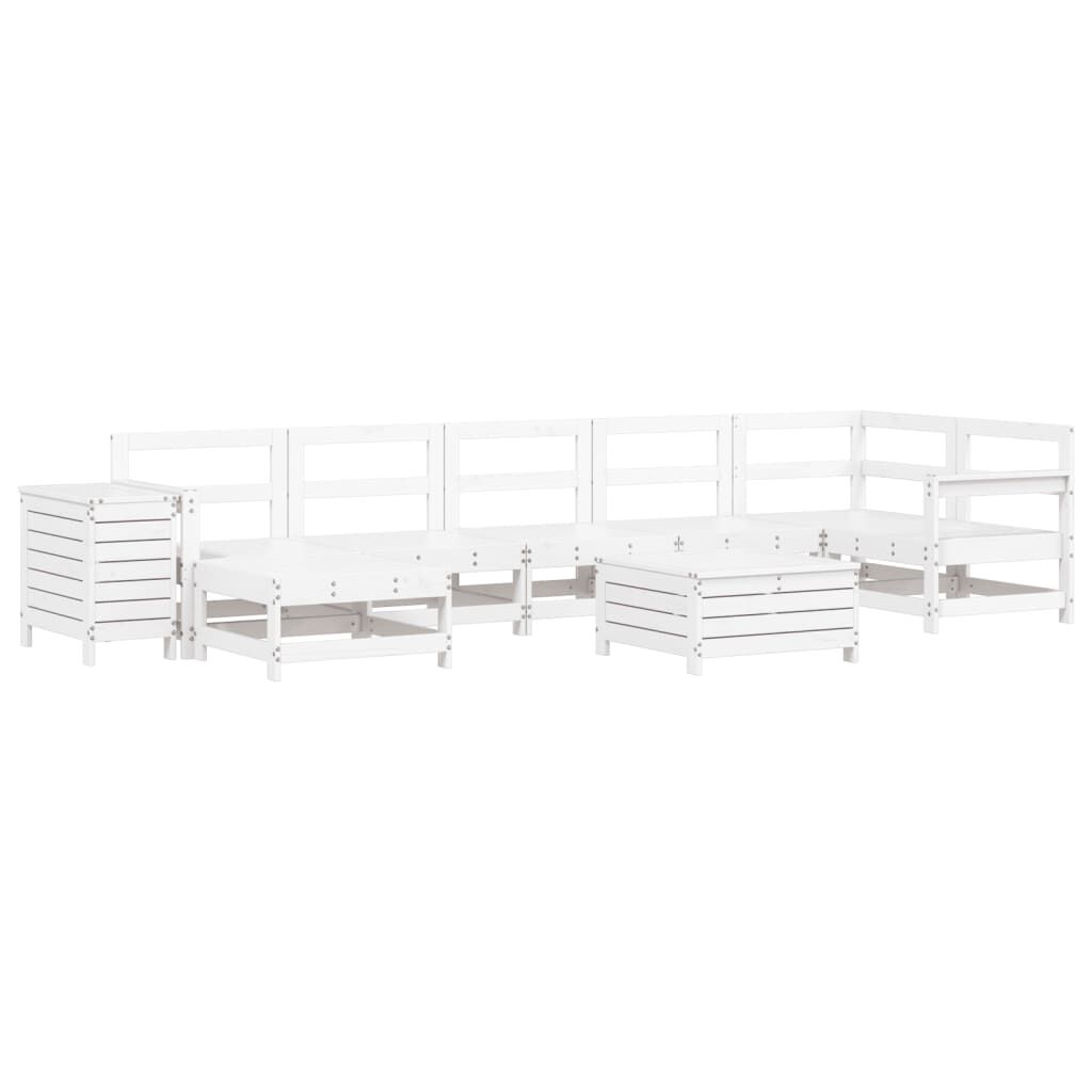 vidaXL 9-daļīgs dārza dīvānu komplekts, priedes masīvkoks, balts