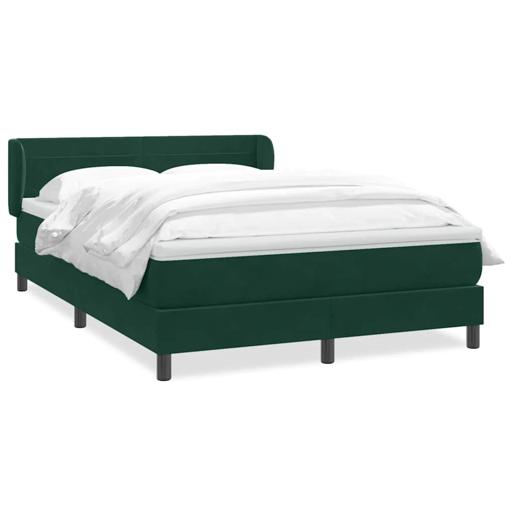 vidaXL atsperu gulta ar matraci, tumši zaļš samts, 160x220 cm
