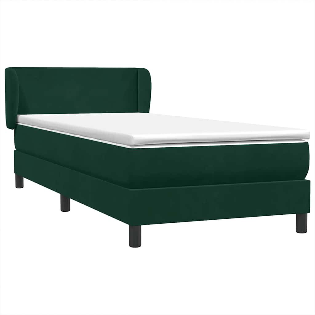 vidaXL atsperu gulta ar matraci, tumši zaļš samts, 90x220 cm