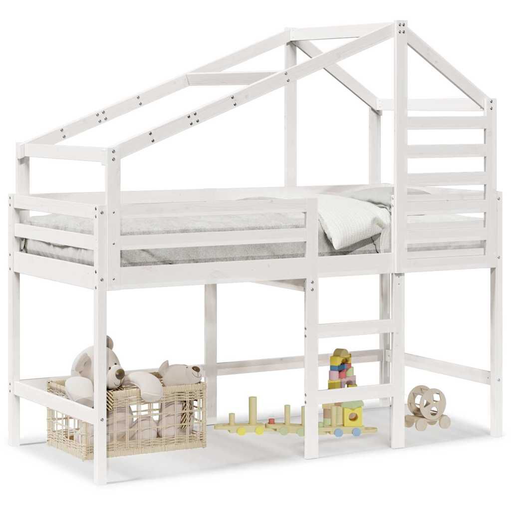 vidaXL augstā gulta ar jumtu, balta, 90x190 cm, priedes masīvkoks