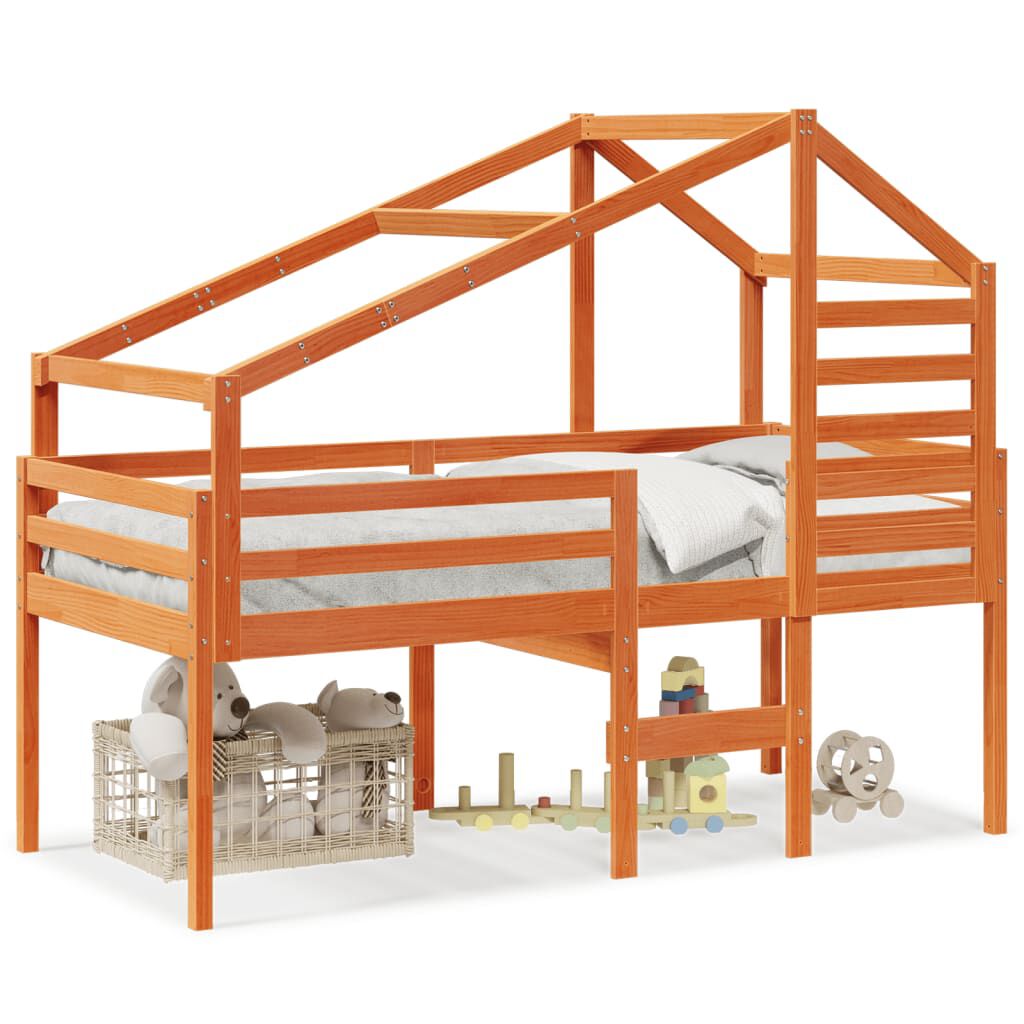 vidaXL augstā gulta ar jumtu vaska brūnas 90x190 cm priedes masīvkoks