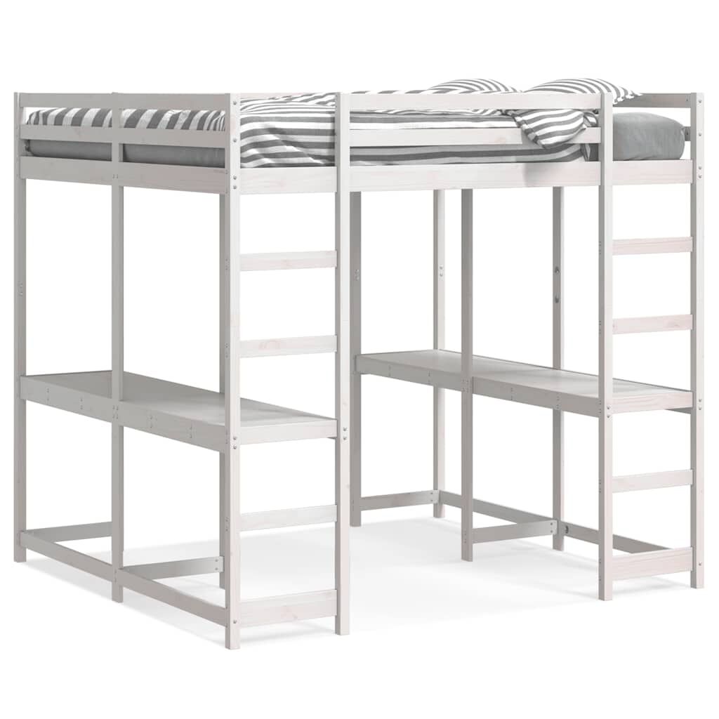 vidaXL augstā gulta, rakstāmgalds, kāpnes, balts, 180x200 cm, priede