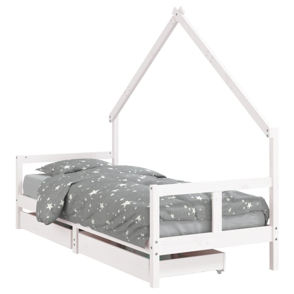 vidaXL bērnu gultas rāmis ar atvilktnēm, balts, priedes masīvkoks