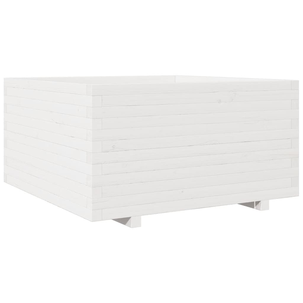 vidaXL dārza puķu kaste, balta, 90x90x49,5 cm, priedes masīvkoks