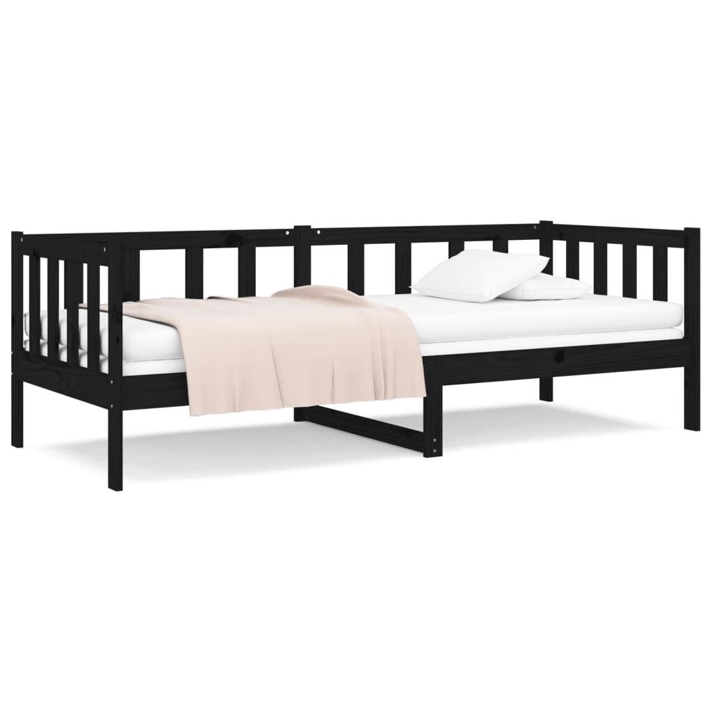 vidaXL dīvāngulta, melna, 90x190 cm, priedes masīvkoks