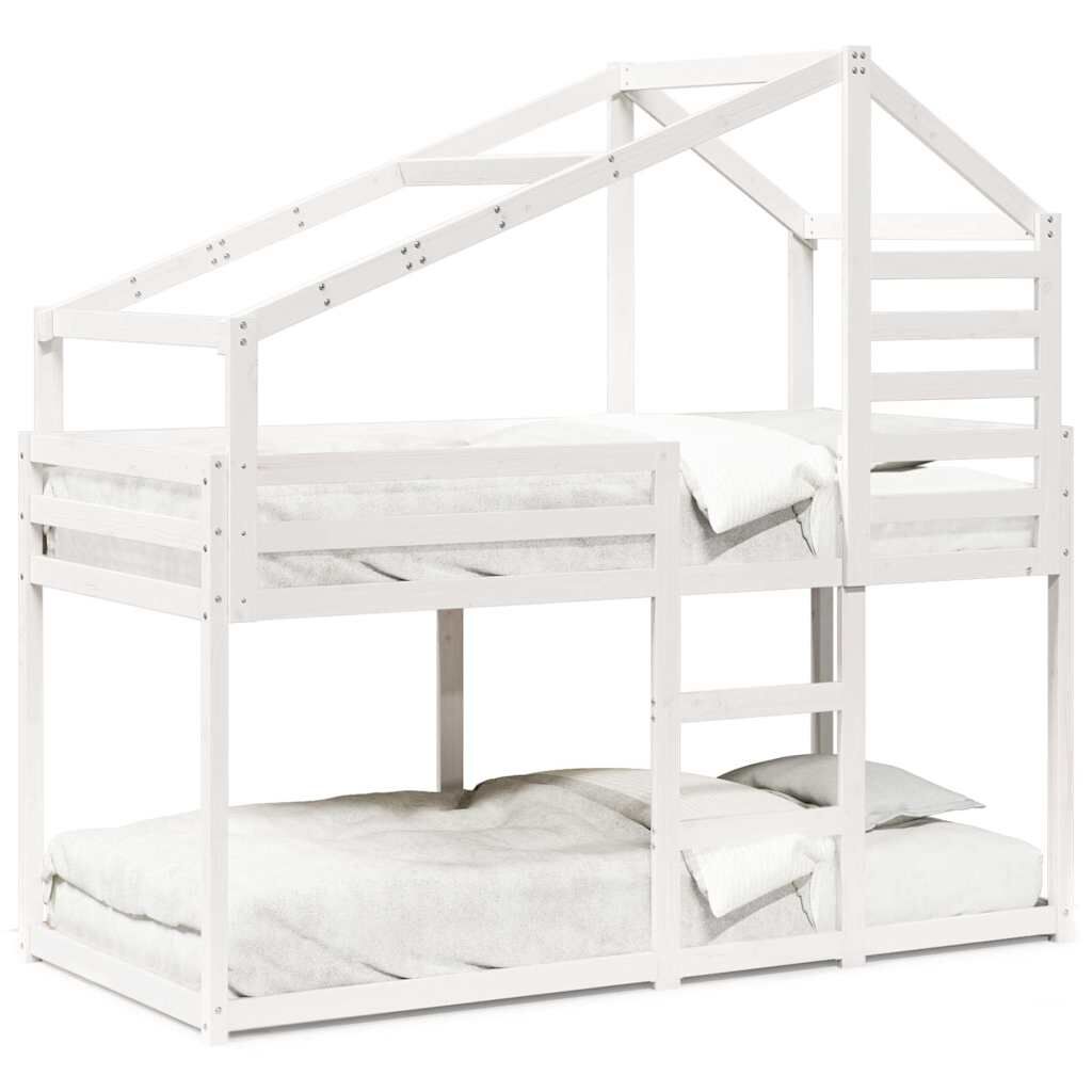 vidaXL divstāvu gulta ar jumtu, balta, 75x190 cm, priedes masīvkoks