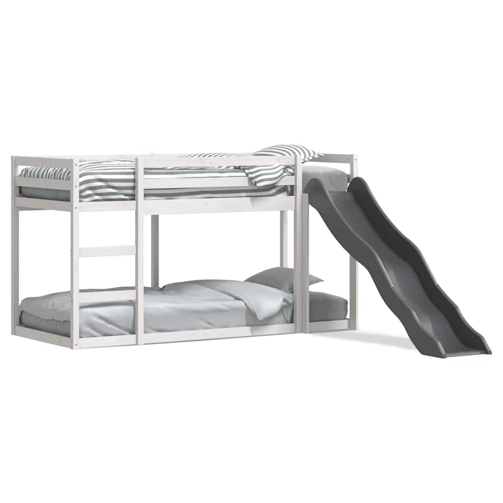 vidaXL divstāvu gulta ar slidkalniņu un kāpnēm, balta, 90x190cm priede