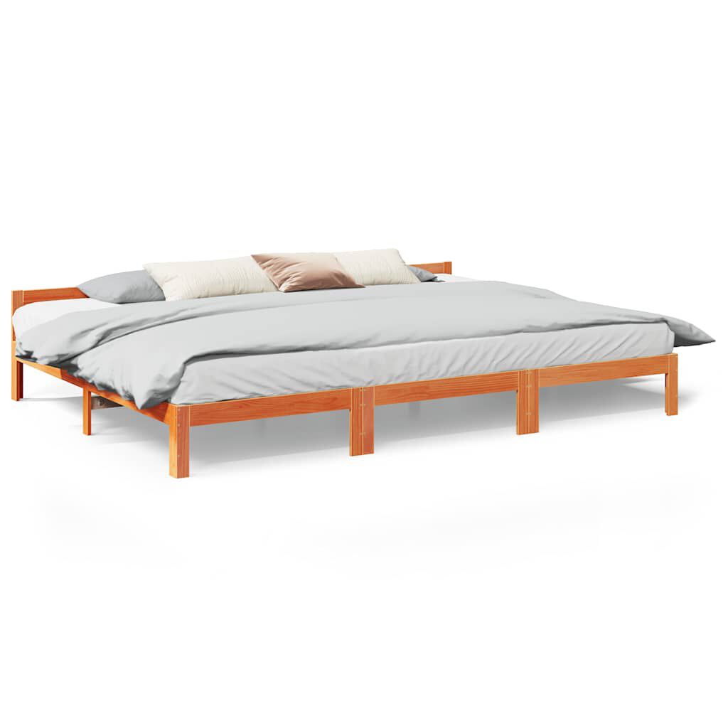 vidaXL ģimenes gultas rāmis bez matrača, brūns, 270x200cm priedes koks