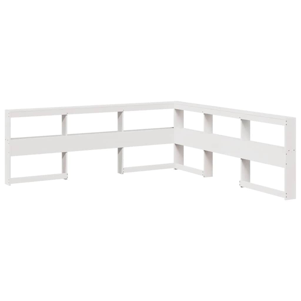 vidaXL Grāmatu skapja galvgalis L-veida 200 cm balts priedes masīvkoks