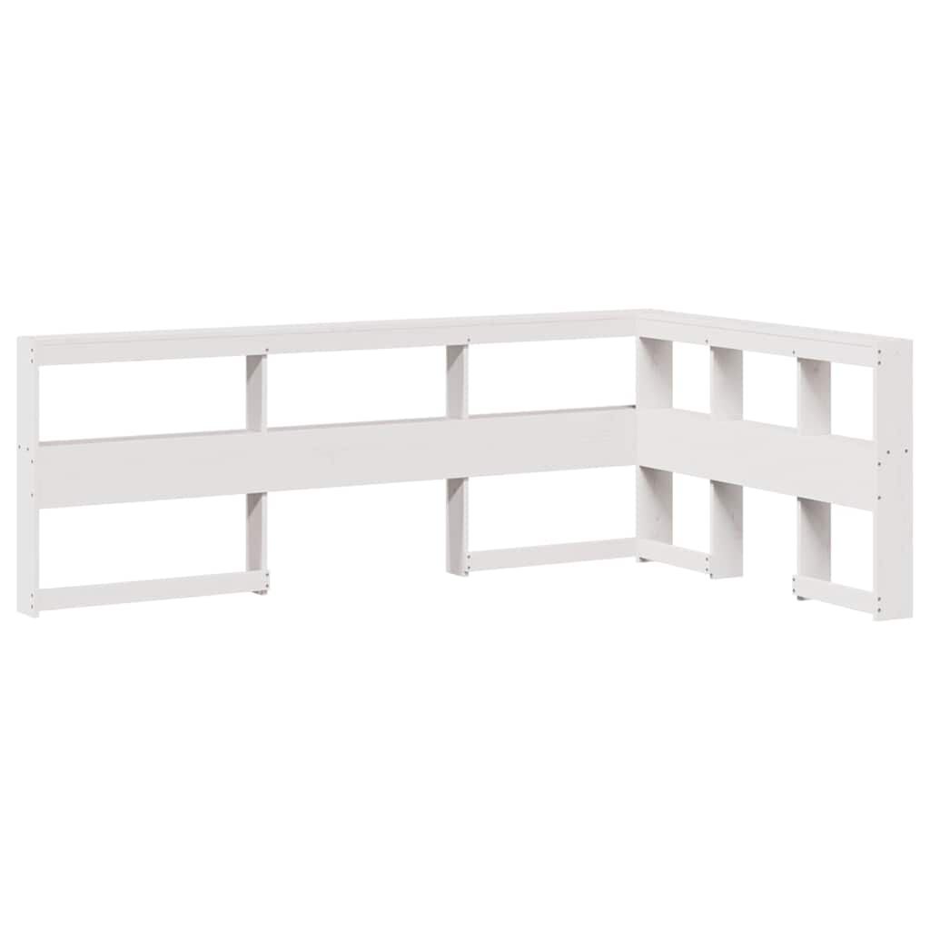 vidaXL Grāmatu skapja galvgalis L-veida balts 120 cm priedes masīvkoks