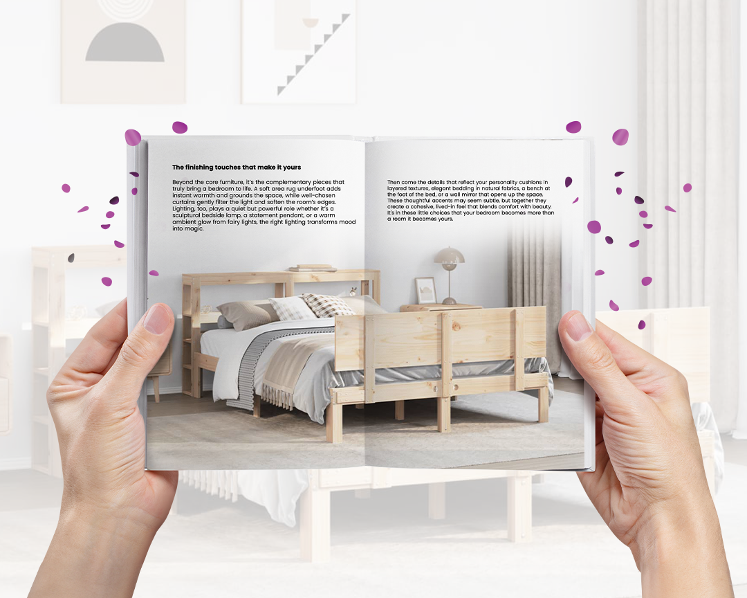 • Stabils un ilgmūžīgs rāmis: masīvkoks ir ļoti izturīgs. Taisnās tekstūras līnijas un raksturīgie mezgli piešķir tam dabisku šarmu.