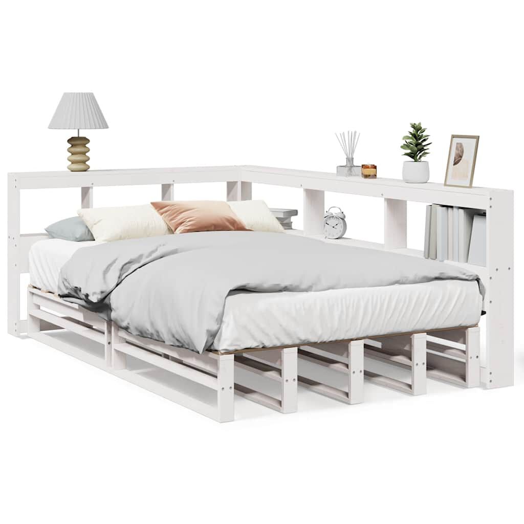 vidaXL gulta ar grāmatu plauktu, bez matrača, 120x200 cm, priedes koks