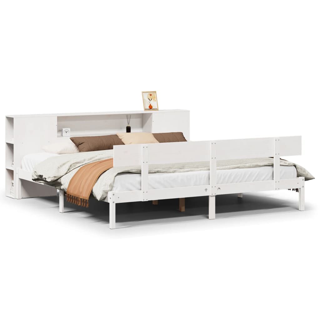 vidaXL gulta ar grāmatu plauktu, bez matrača, 200x200 cm, priedes koks