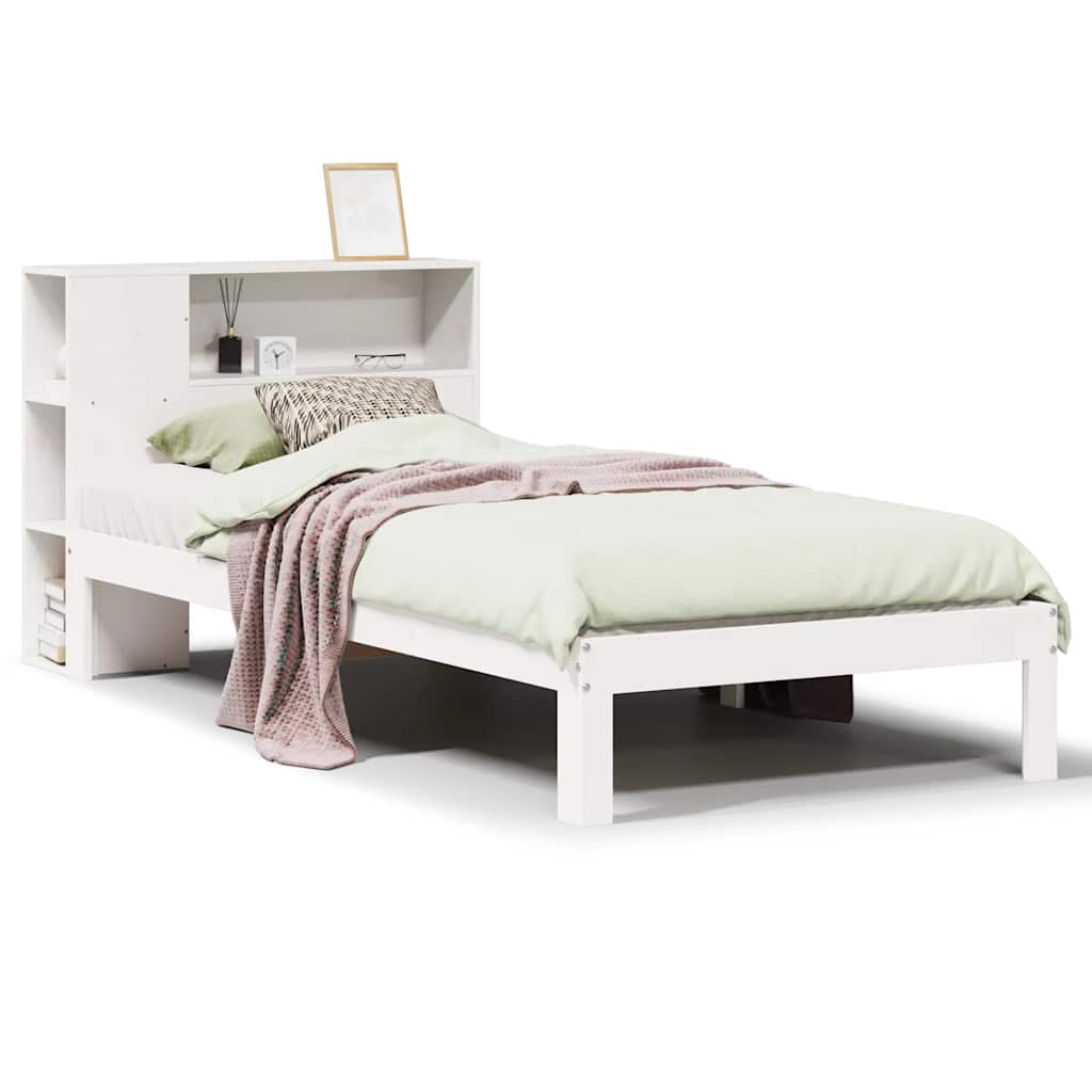 vidaXL gulta ar grāmatu plauktu, bez matrača, 75x190 cm, priedes koks