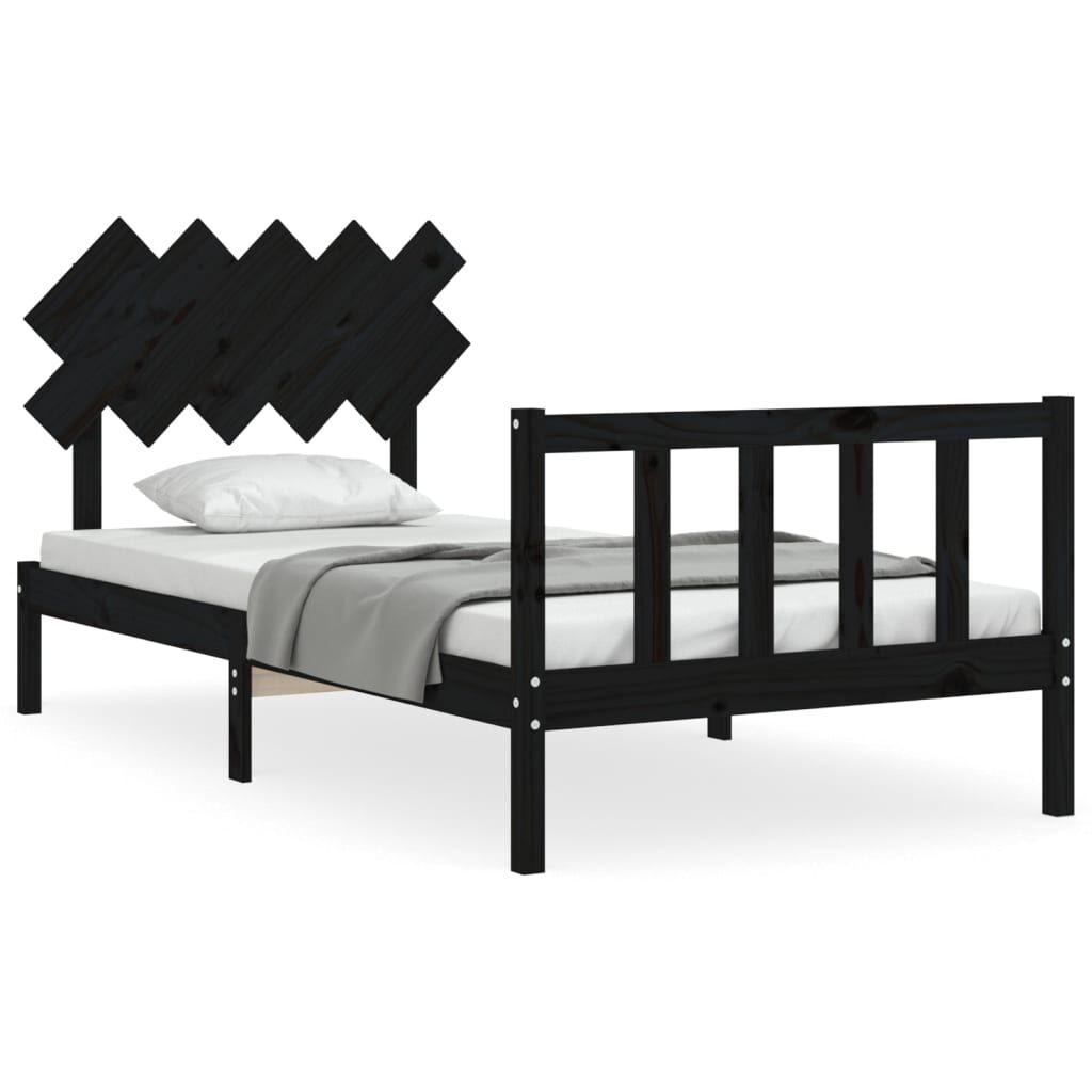 vidaXL gultas rāmis ar galvgali, 100x200 cm, masīvkoks, melns