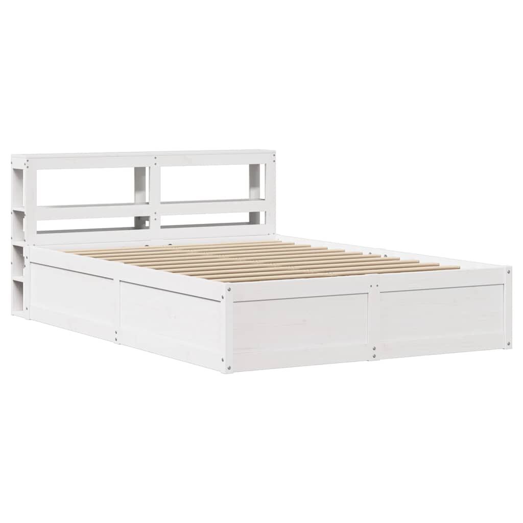 vidaXL gultas rāmis ar galvgali, balts, 140x190 cm, priedes masīvkoks
