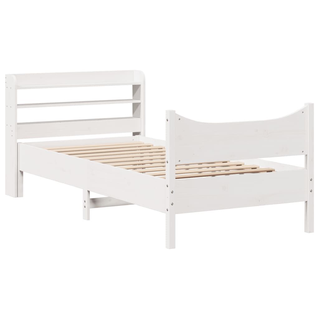 vidaXL gultas rāmis ar galvgali, balts, 90x190 cm, priedes masīvkoks