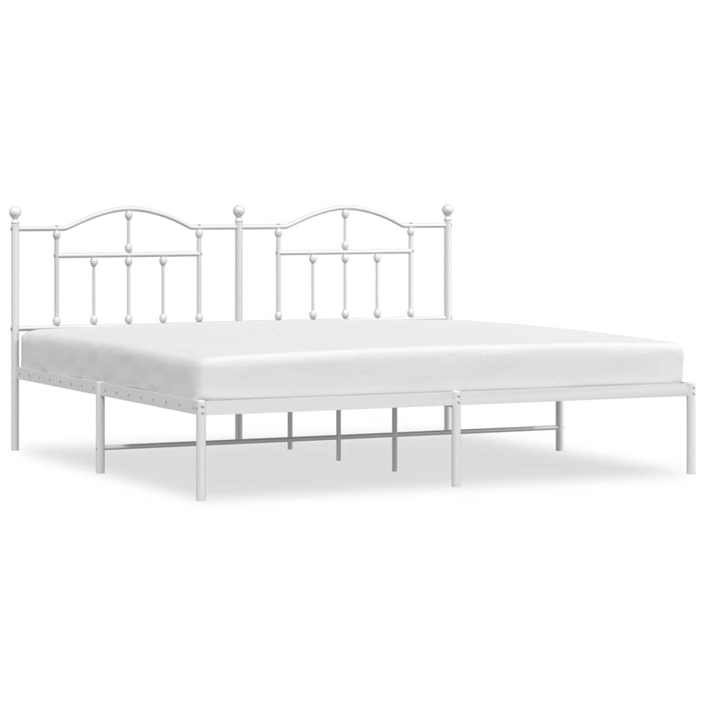 vidaXL gultas rāmis ar galvgali, balts metāls, 193x203 cm