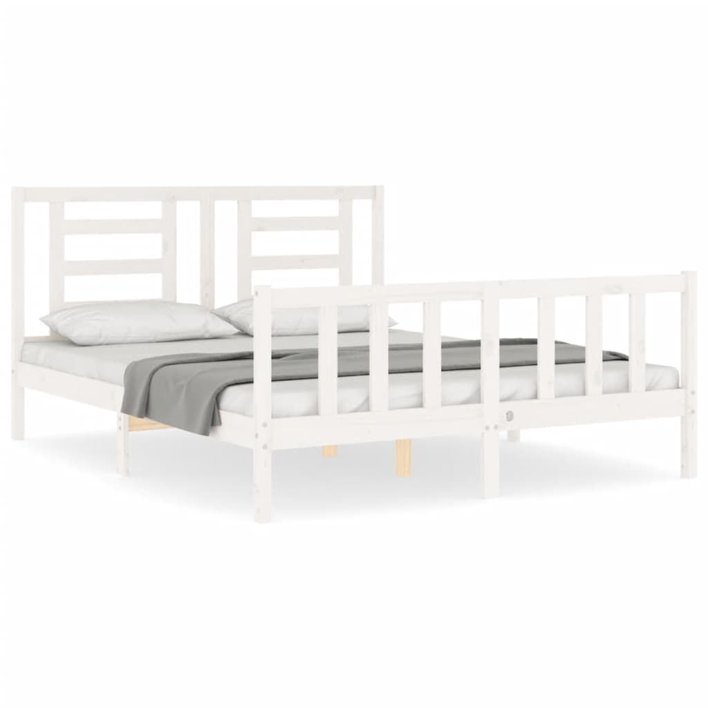vidaXL gultas rāmis ar galvgali, King size izmērs, masīvkoks, balts