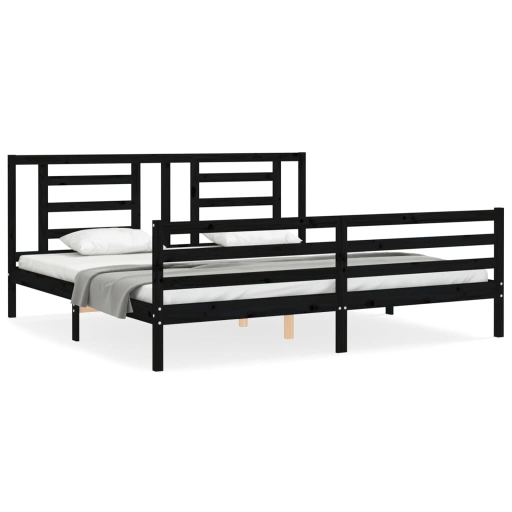 vidaXL gultas rāmis ar galvgali, melns, 200x200 cm, masīvkoks