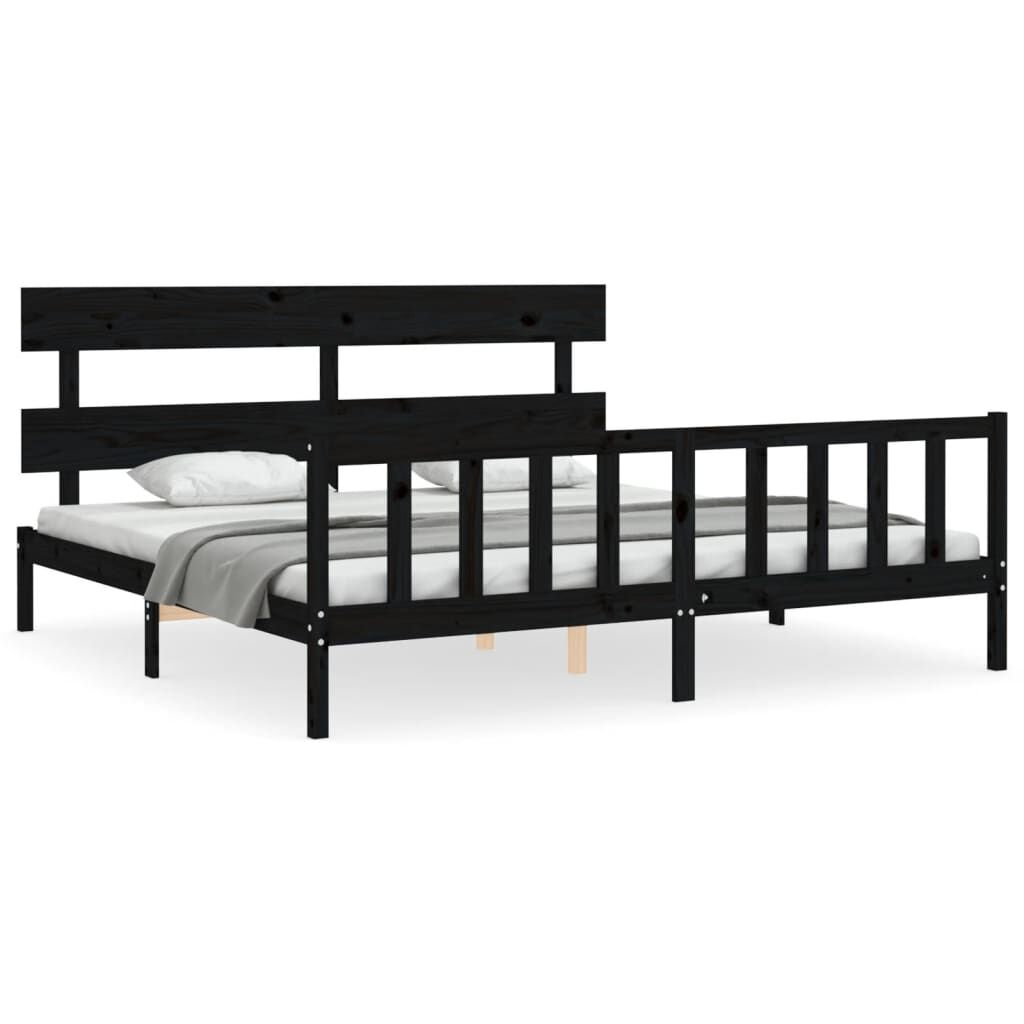 vidaXL gultas rāmis ar galvgali, Super King, masīvkoks, melns