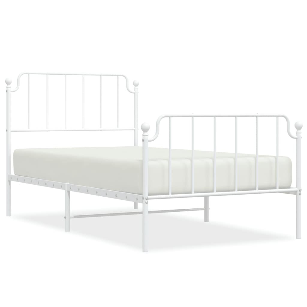 vidaXL gultas rāmis ar galvgali un kājgali, balts metāls, 100x190 cm