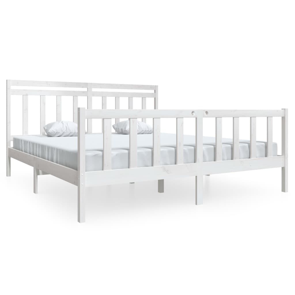 vidaXL gultas rāmis, balts, 180x200 cm, Super King izmērs, masīvkoks