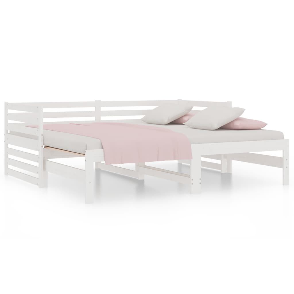 vidaXL izvelkama gulta, balta, 2x(80x200) cm, priedes masīvkoks