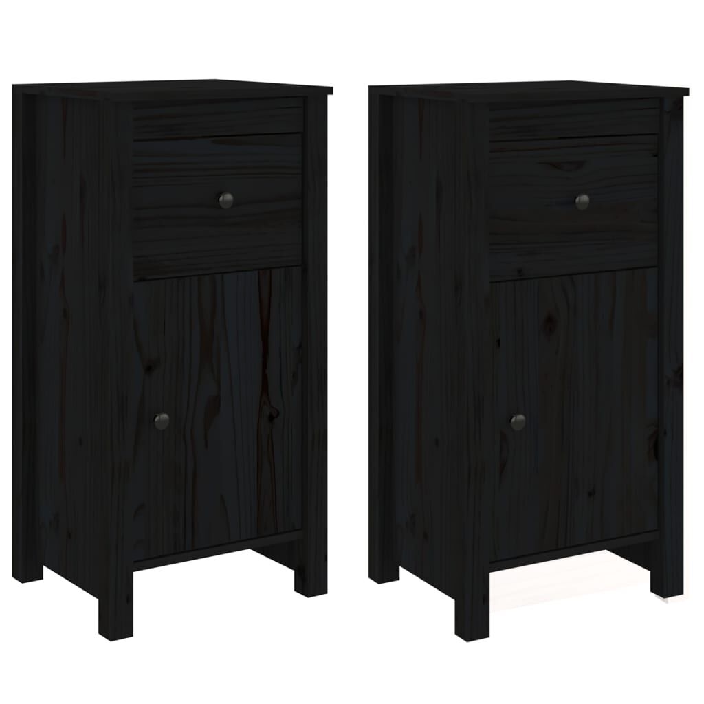 vidaXL kumodes, 2 gab., melnas, 40x35x80 cm, priedes masīvkoks