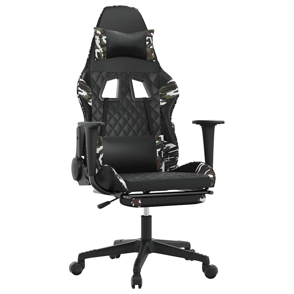 vidaXL masāžas datorspēļu krēsls, melna un kamuflāžas mākslīgā āda